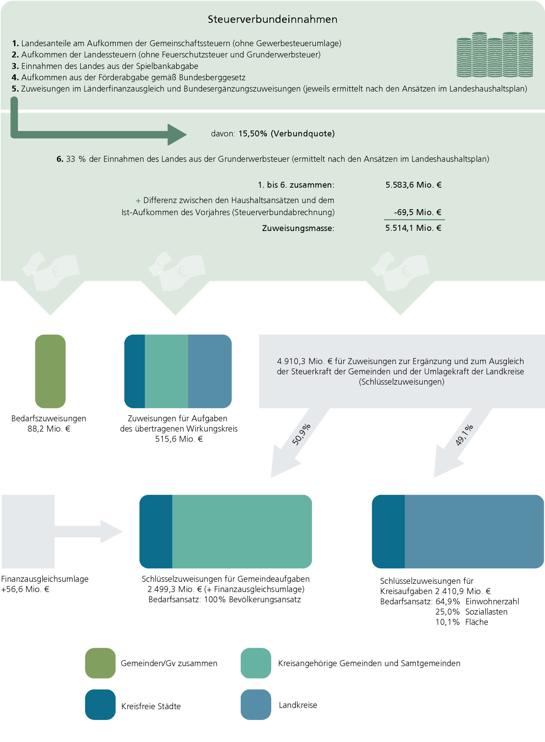 • den erwarteten Steuerverbundeinnahmen – also den Steuereinnahmen des Landes – und