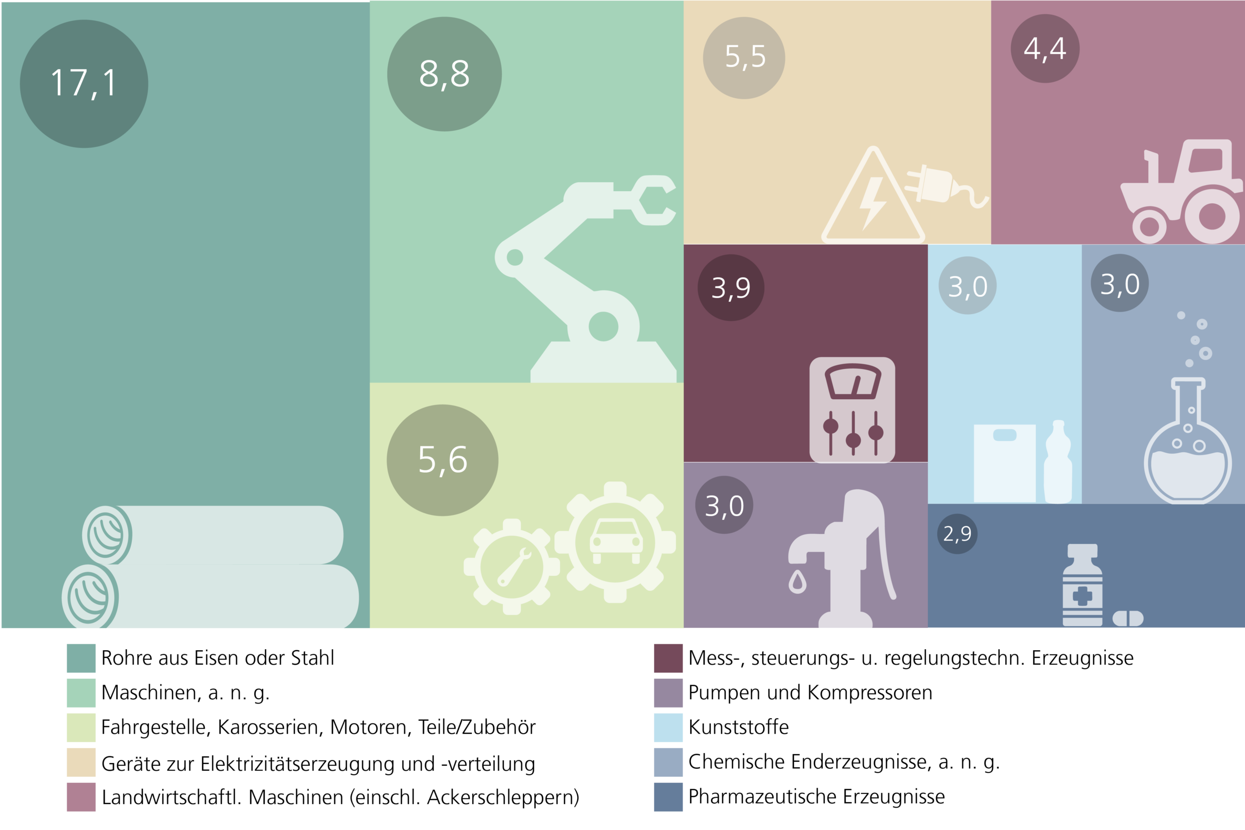 Rohre aus Eisen oder Stahl wichtigstes Exportgut